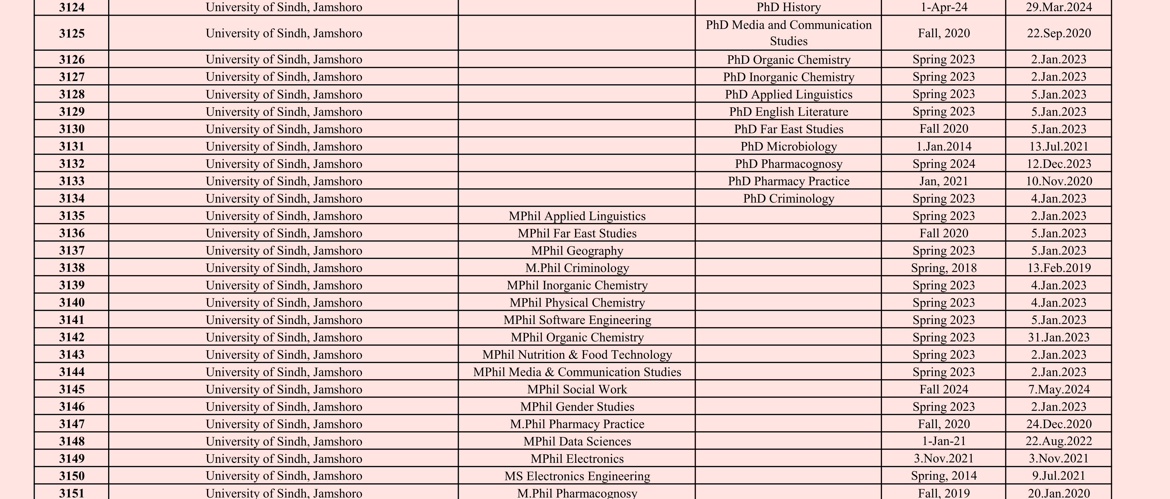 HEC was requested to restart the halted programs during 2017. The latest summary sent to HEC dated: December 11 & also on December 21, 2023; The Program got approved in HEC-PGPR visit on 15-17th November 2023